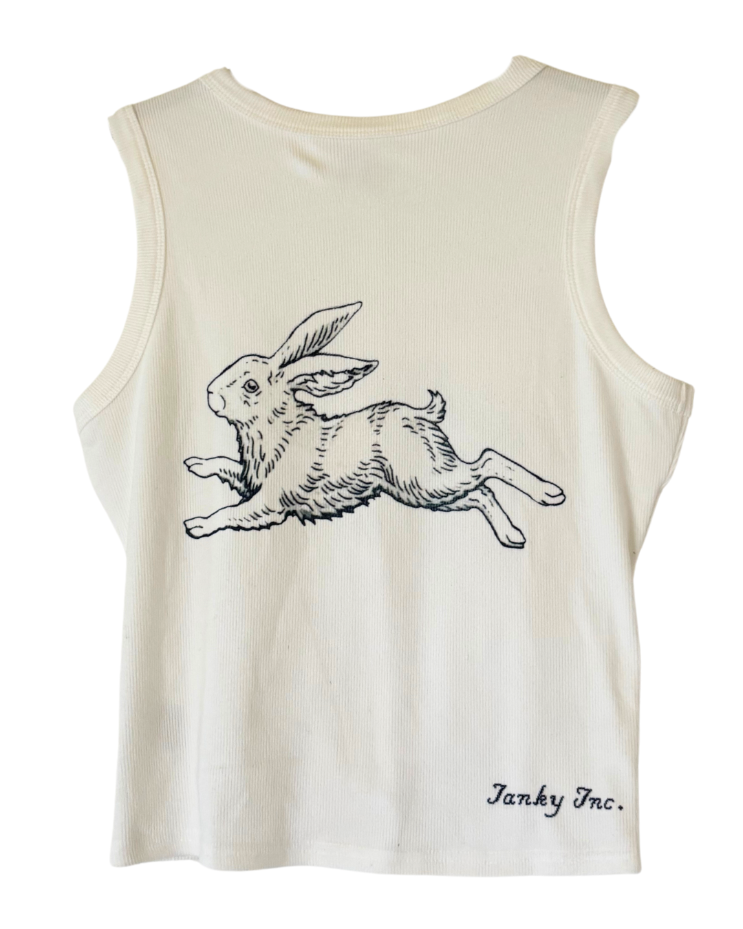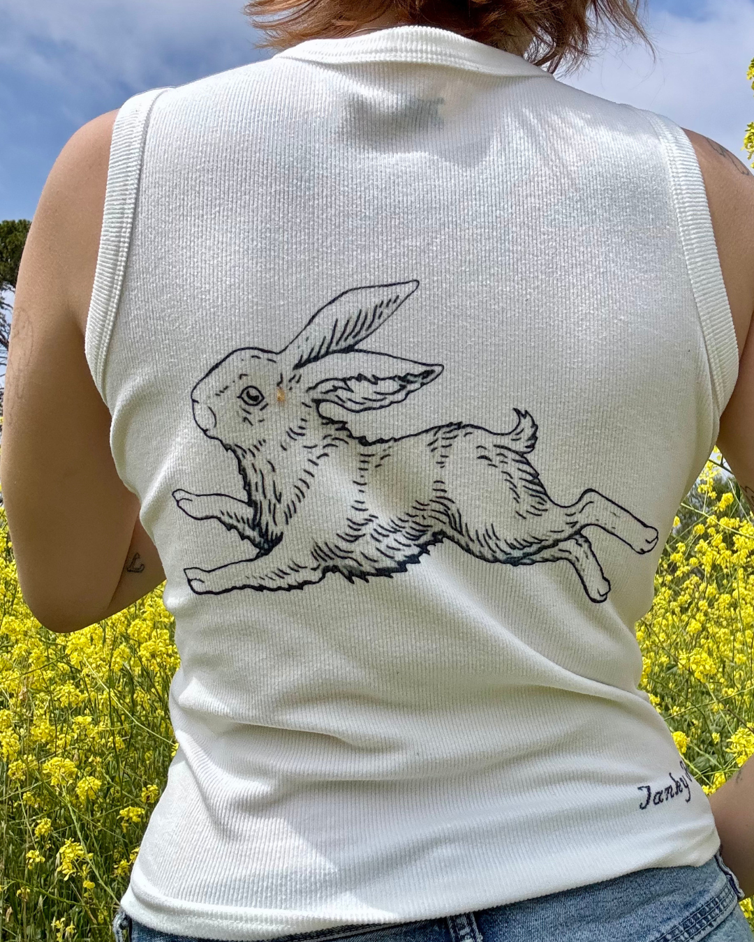 The perfect vintage cut. A hand-printed graphic that speaks for itself — the Lucky Bunny Tank is made to be worn in, worn out, and worn again. Made from a cotton-poly blend that wears like a charm.